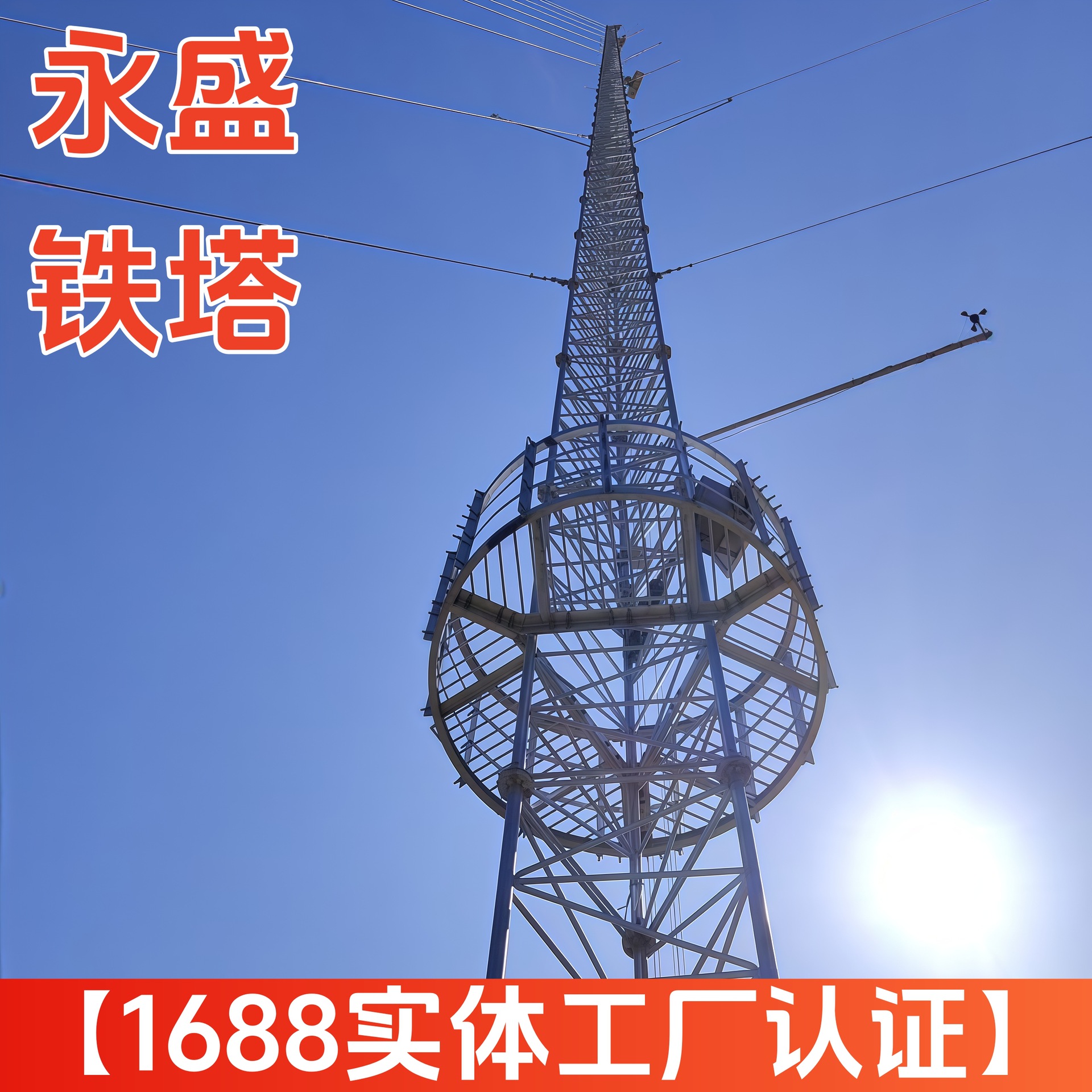 160m ワイヤー牽引風向計測風塔気象風速監視塔カーボンフローデータ監視鉄塔自立型風向計測風塔