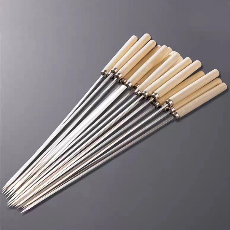 バーベキュースティックステンレス鋼木製ハンドル大型家庭用ラム串針串鋼スティックフラットバーベキュー大串串針