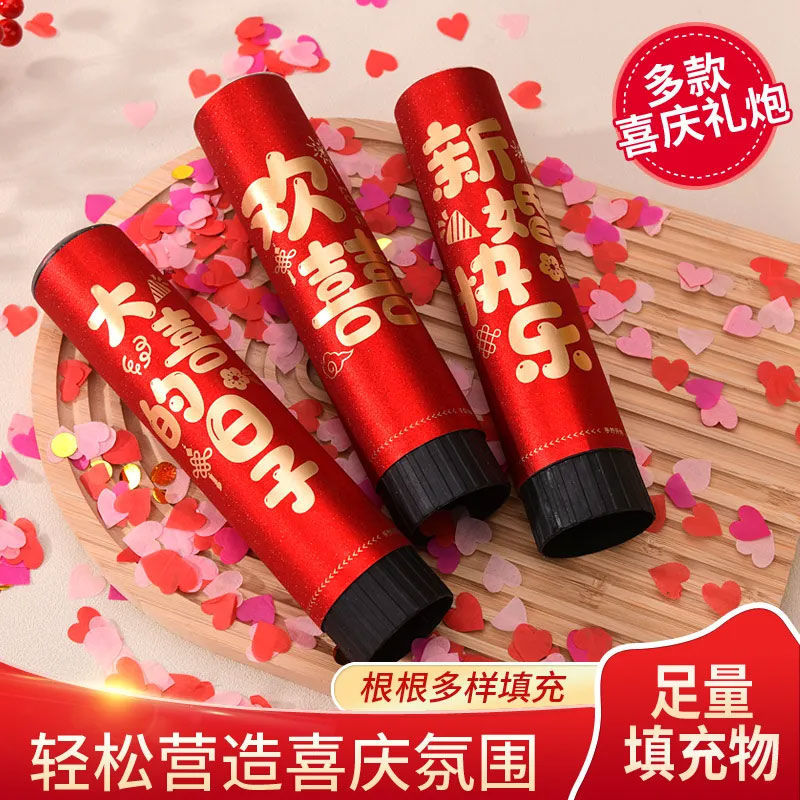 礼花喬迁の喜びは礼筒教室の新居の新しい部屋の手を持って小さな礼砲彩帯花びら雨用品大全を持っている