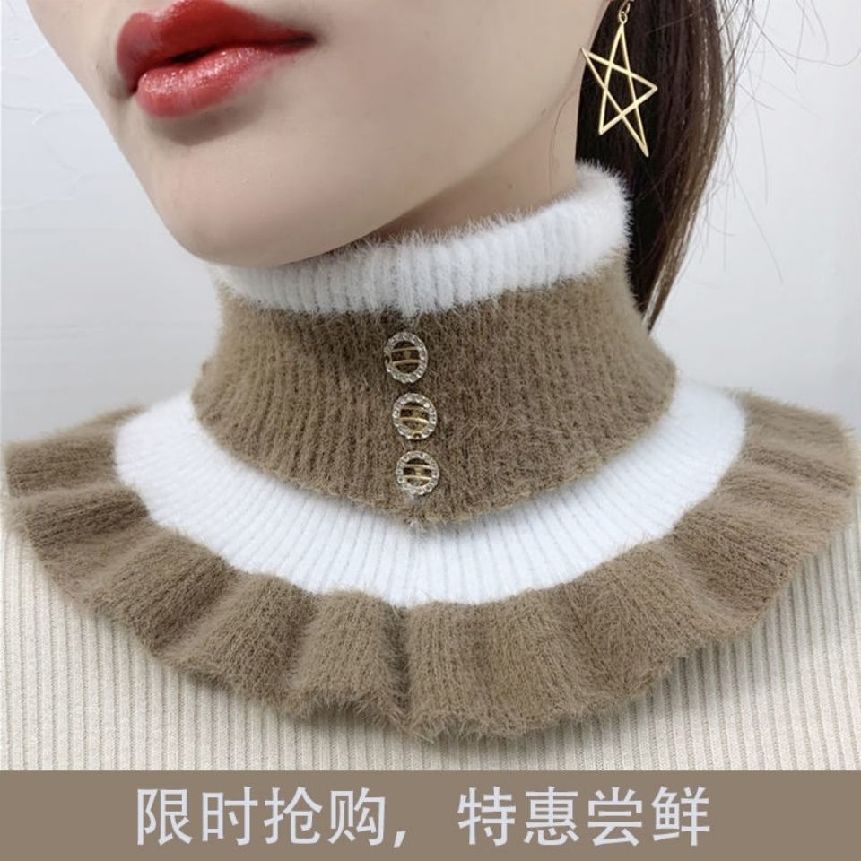 ミンクの毛をまねて首を囲む女性の頭をかぶせます。