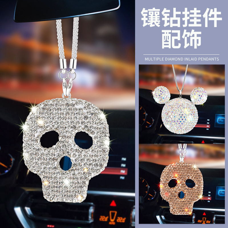 2025新型のダイヤモンド付き自動車のペンダント高級感のあるスカルの頭に飾られた車のアクセサリーのバックミラーのペンダントに飾られています。