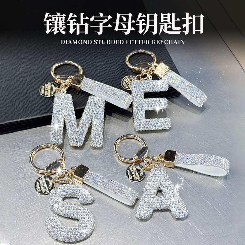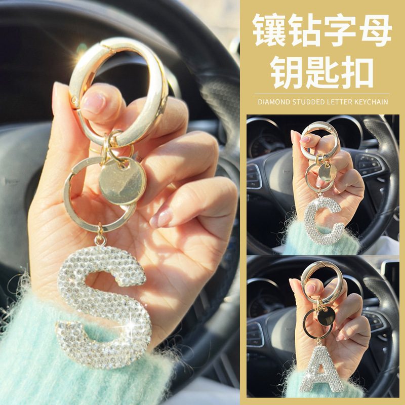 爆発的なアルファベットのキーホルダーリングの新しい自動車装飾の高級感のあるバッグのアクセサリーのペンダントにドリルのペンダントを入れて卸売りします。