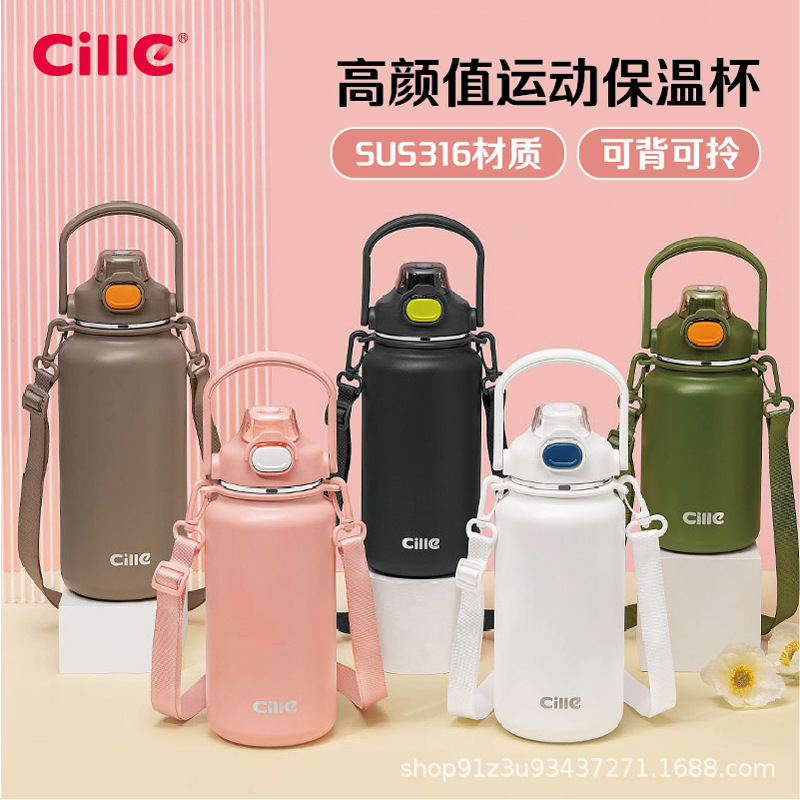 希楽保温カップ女子高颜値316ステンレスカップストローカップ大容量男性運動保温水筒