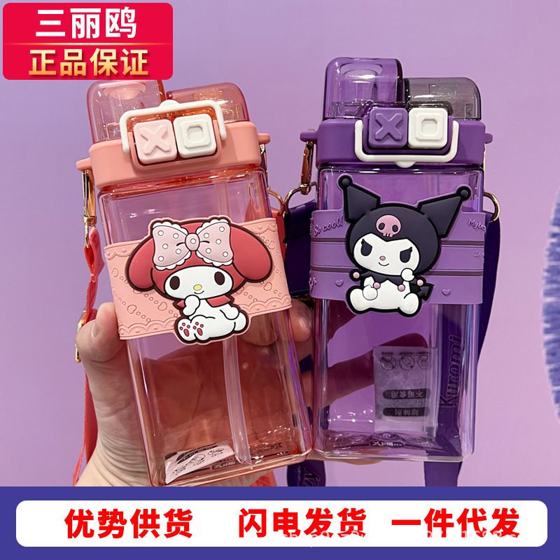 サンリオ水カップ高颜値ダブルドリンクカップ女子四角いカップストロー付き携帯児童学生カップクロミ