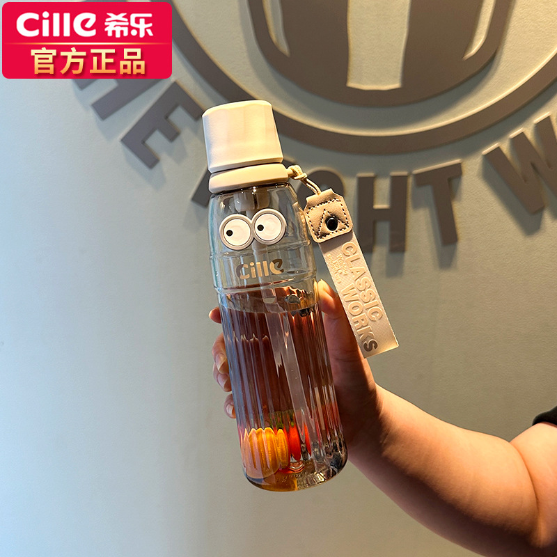 希楽tritanコップ男女士高颜値学生大容量カップストロー二重カップベルト付き水筒