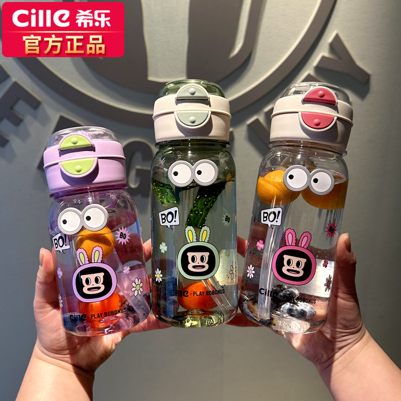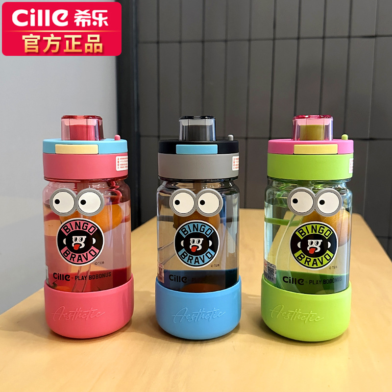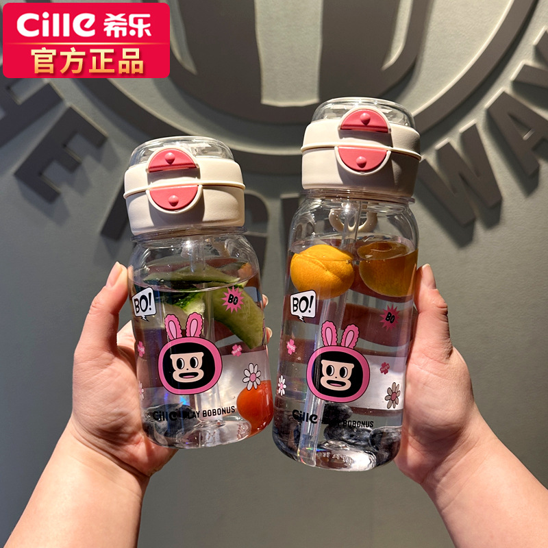 希楽コップ女子高颜値ストローカップ夏tritanプラスチックコップ男子小学生学校携帯水筒