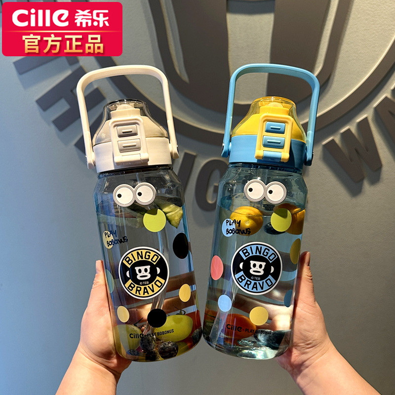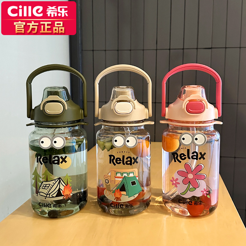 CILLE/希楽大容量エッセンシャルカップ学生水カップ携帯型転倒防止カップ漏れ防止ストローカップフィットネスカップ