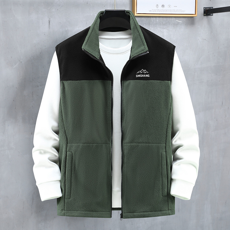 太った男のフリース馬甲男性の新型秋冬ベストの肩の外に太った大きなコードを着てトレンドコートを厚くする
