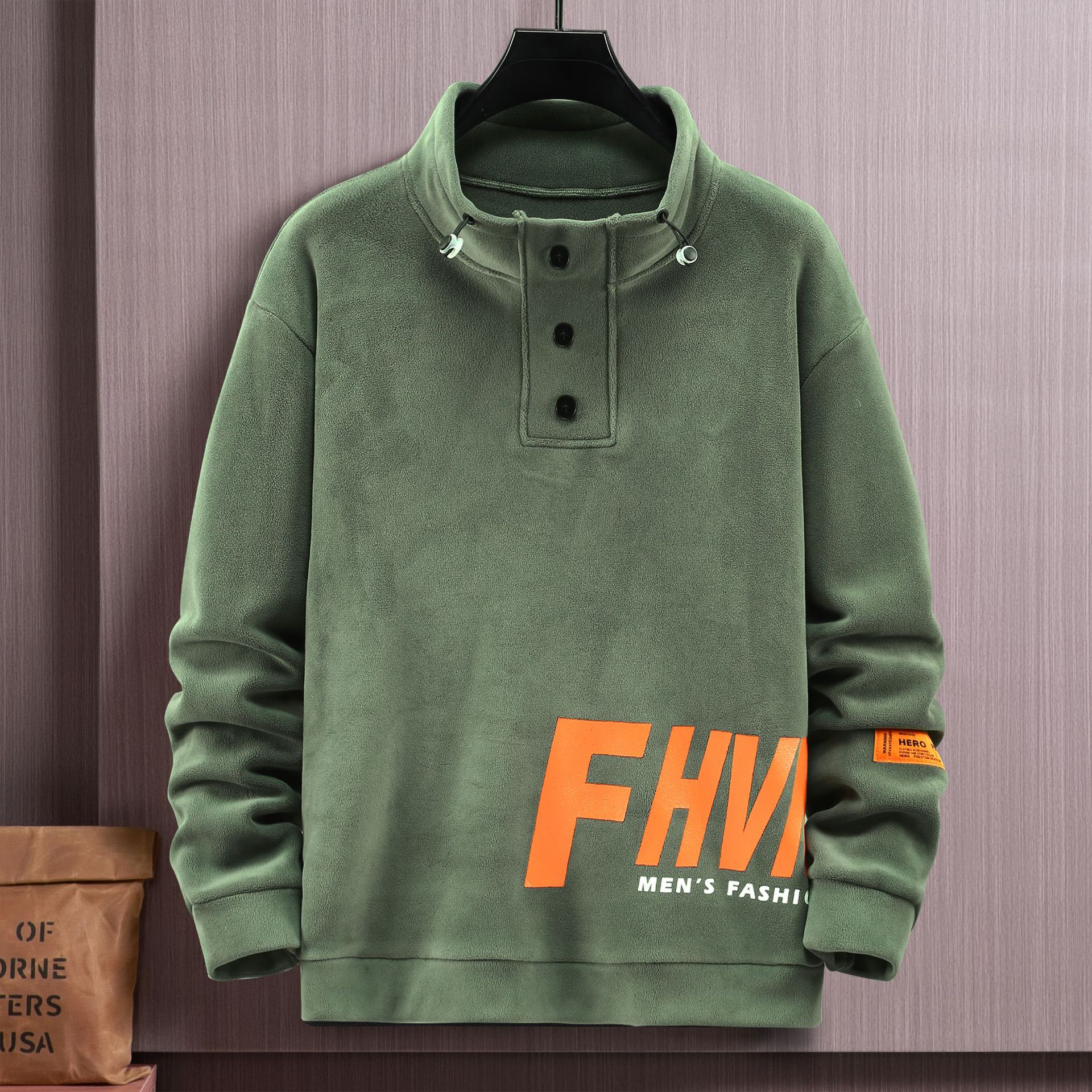 太って大きいサイズのオリーの絨毯の男性の秋冬のゆったりしている立襟の底のシャツのデブのカジュアルな保温の厚い衛衣