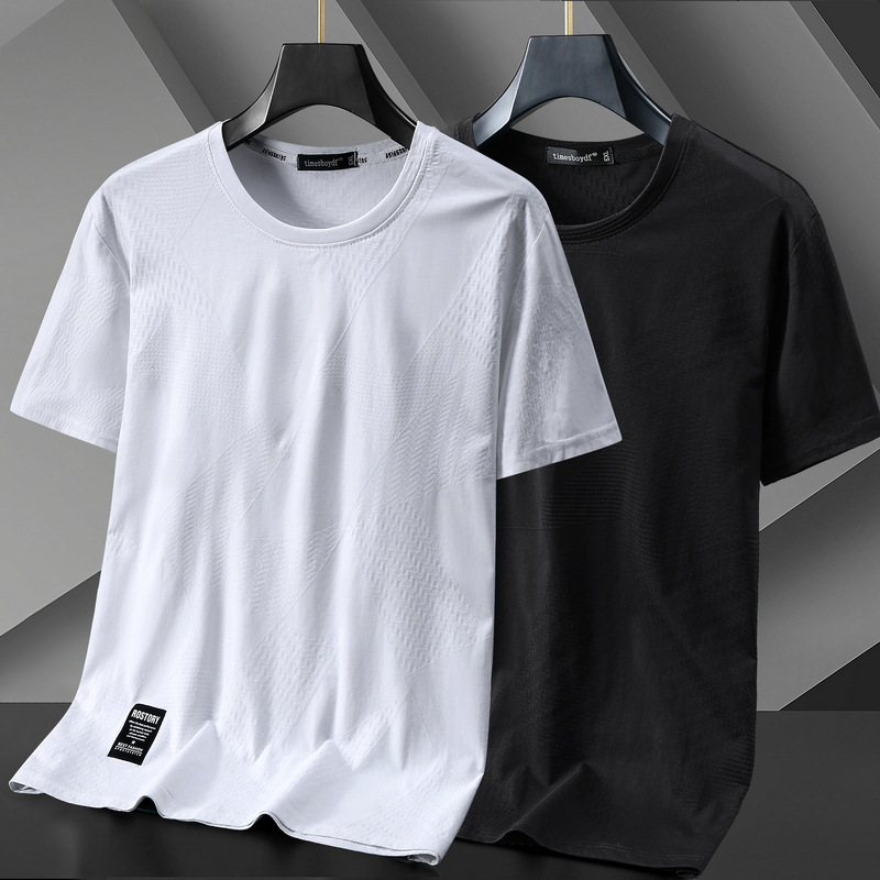 太って大きいサイズの半袖のtシャツの男性の夏の新型のゆったりした丸首のtシャツの大きいサイズの半袖の通気性の運動の上着