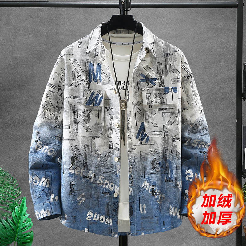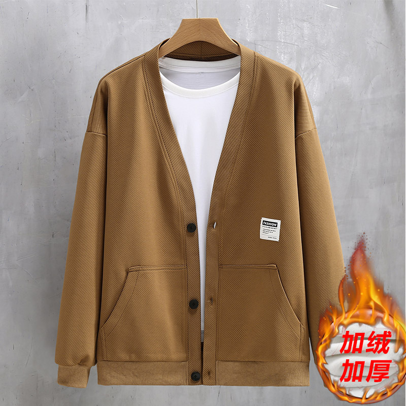 太ったセーターの男性は秋冬にコートを厚くしてシャツを着てカジュアルでゆるいサイズの両面パイル保温上着男