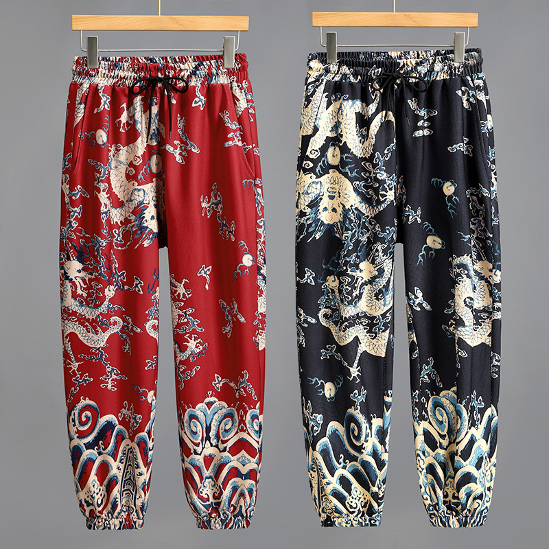 太って大きいサイズのズボンの夏の男性の薄いタイプのカジュアルなズボンの男性の国の潮のズボンの中国風のゆったりしている足首のズボン