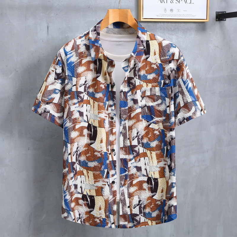 太ったサイズの花を染めたシャツの男性半袖夏のカジュアルなシャツの半袖の太った男の男性服のファッション