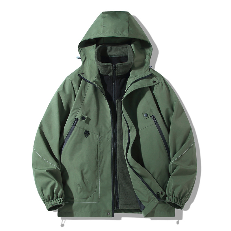 三合一の工装ジャケット男の太った男は冬に戸外にベルベットをつけて、取り外し可能なコートのフリースの大きいサイズの上着を厚くした