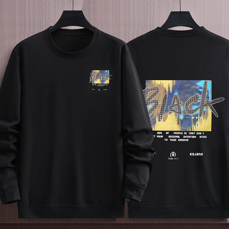 大きいサイズのアルファベットのプリントのパーカーのコートの男性の春秋のタイプの丸首の長袖のtシャツの男性の太った人はカジュアルでゆったりしています。