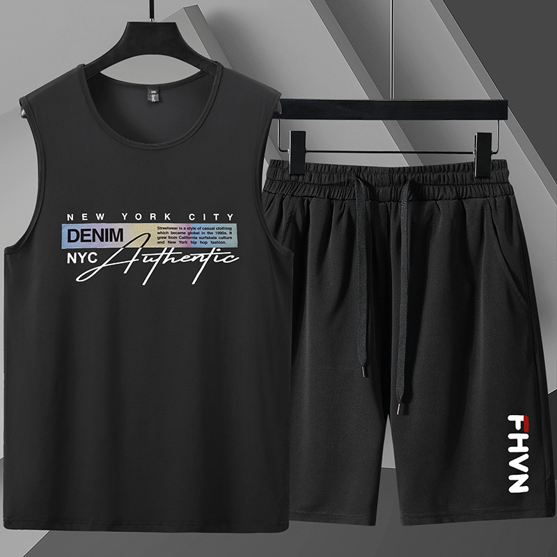 太ったプラスサイズのスポーツスーツ男性服通気性のある太った半袖袖なしtシャツ速乾服ベスト夏