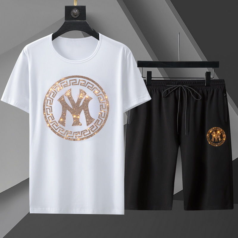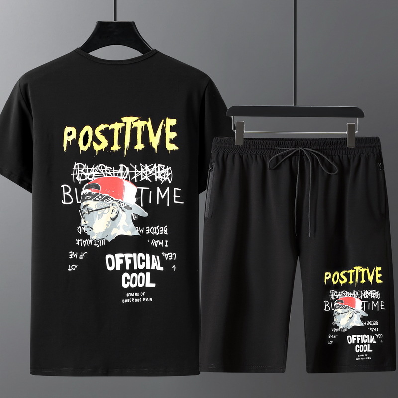 大きいサイズの半袖tシャツの半ズボンのドリルのスーツの男性の大きいサイズのファッションのブランドの韓国版のかっこいいレジャーのスポーツの2つのセットの夏
