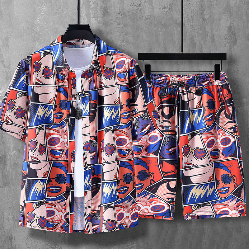 プラスサイズの大きいサイズのシャツの半袖のスーツの男性の夏の薄いタイプのカジュアルな半袖のゆったりしている新型のシャツのショートパンツの男性