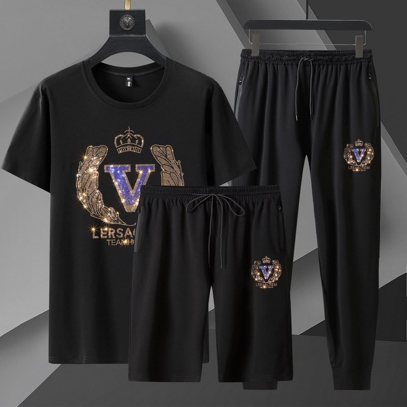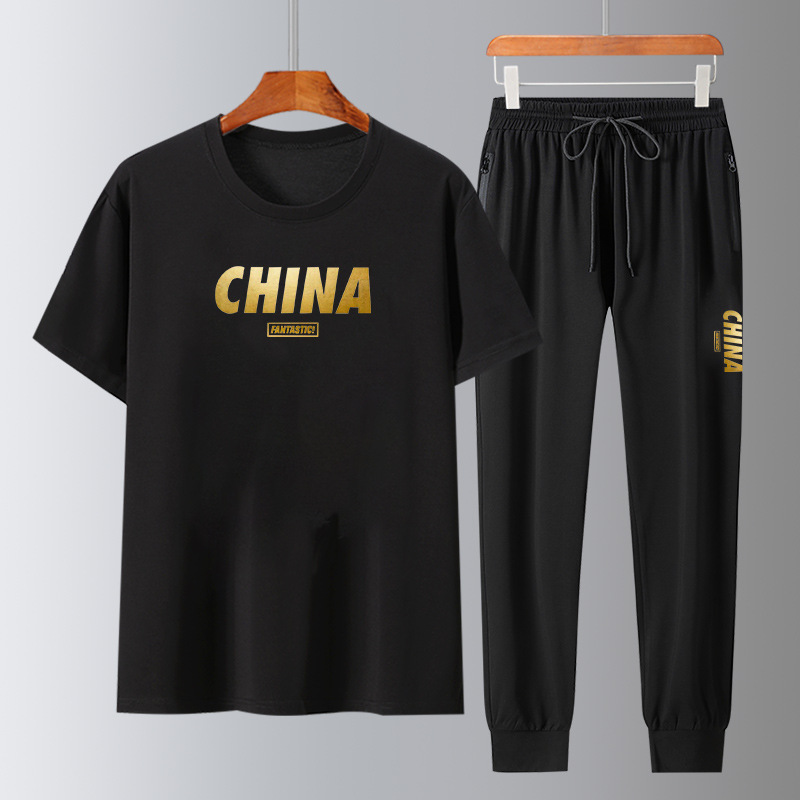 夏の男性半袖tシャツ半ズボンセット大きいサイズゆるいカジュアルスポーツファッション服3点セット男性