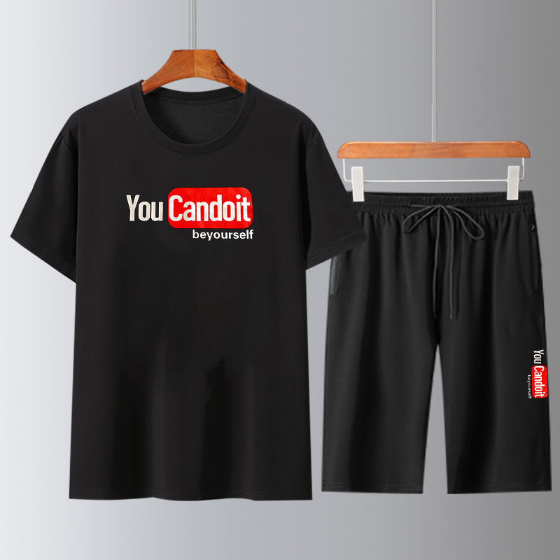 大きいサイズのスポーツスーツの男性の夏の半袖のtシャツの青年のデブのカジュアルな思いやりの半ズボンの夏の5分のズボンは薄いです。