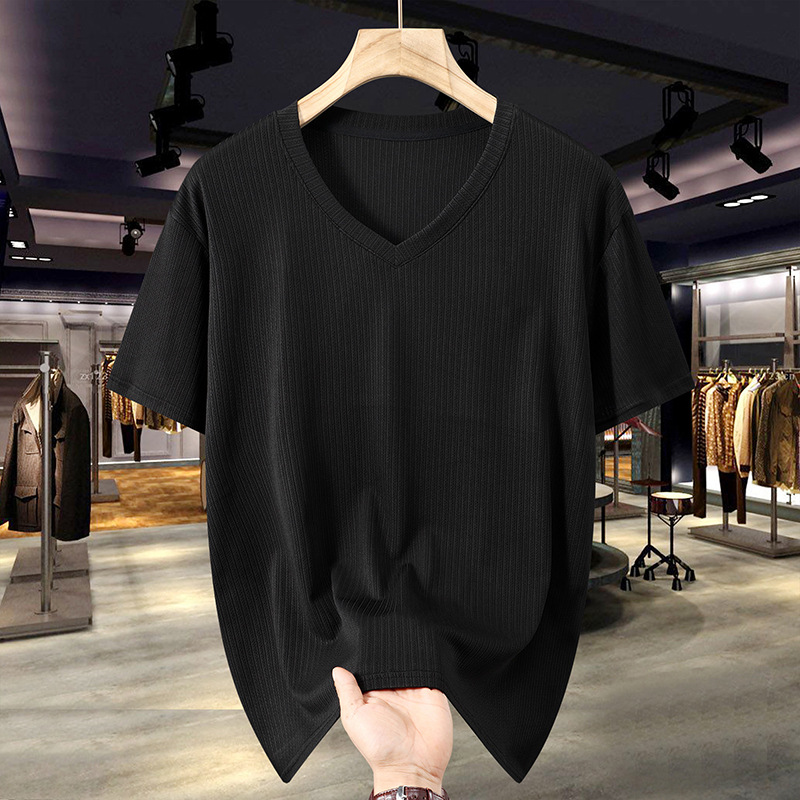 太って大きいサイズの半袖tシャツの男性の夏の新型vネックのレジャーの上で服のデブの青年の潮流のtシャツの男性