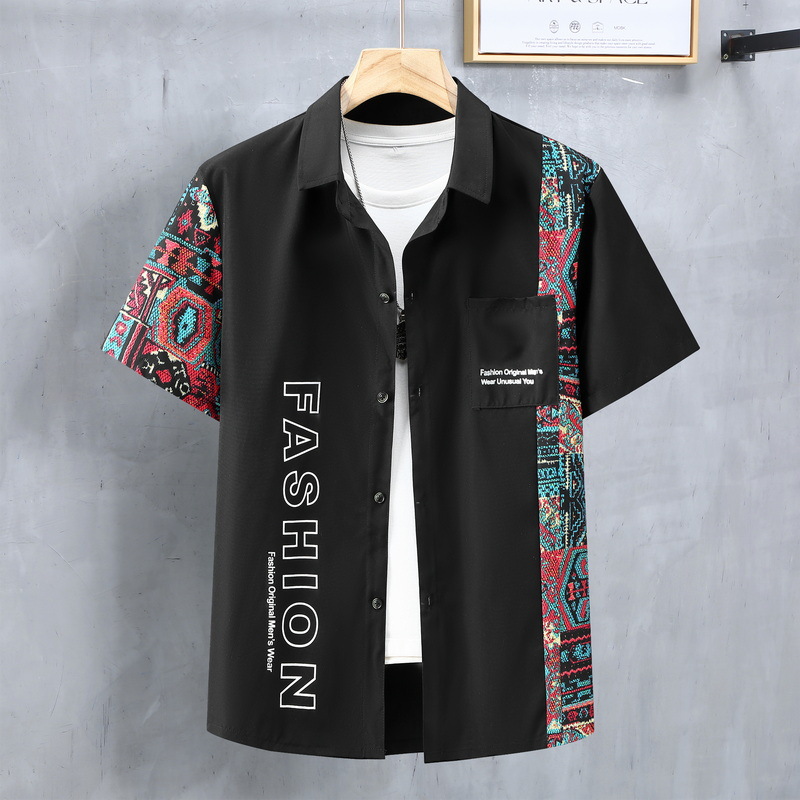太ったサイズの半袖男性シャツ春夏の薄いサイズのゆるい半袖上着太ったカジュアルな男性服