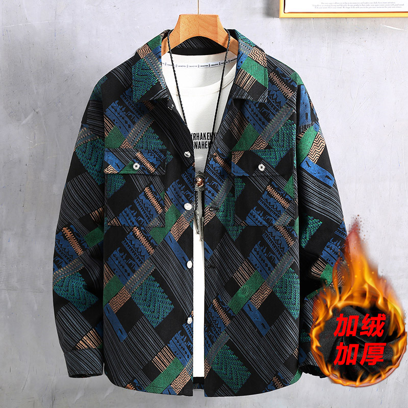 秋冬にベルベットのシャツを着た男性は、ゆったりしたポロシャツを厚くして、太って大きいサイズの保温男性のシャツの上着を着た