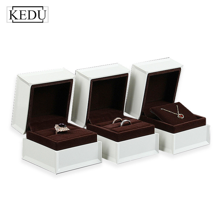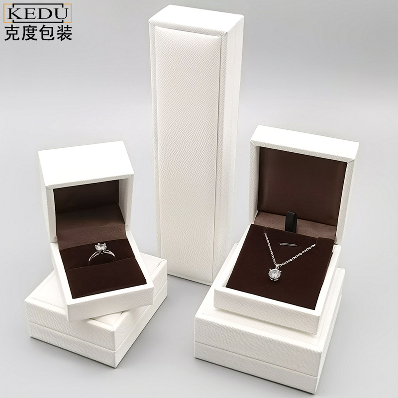 工場は現物pu宝飾品箱指輪箱包装箱ドリルリング箱ネックレス箱白色ブレスレット箱を供給している