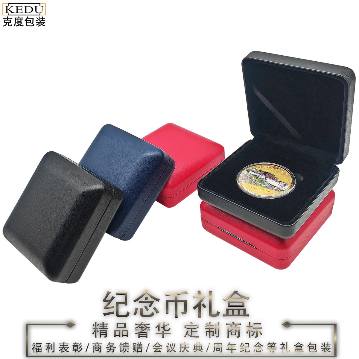 高級pu創意金属記念貨幣の箱の金貨の円の礼箱の生肖の貨幣のメダルのバッジは箱を収集します。