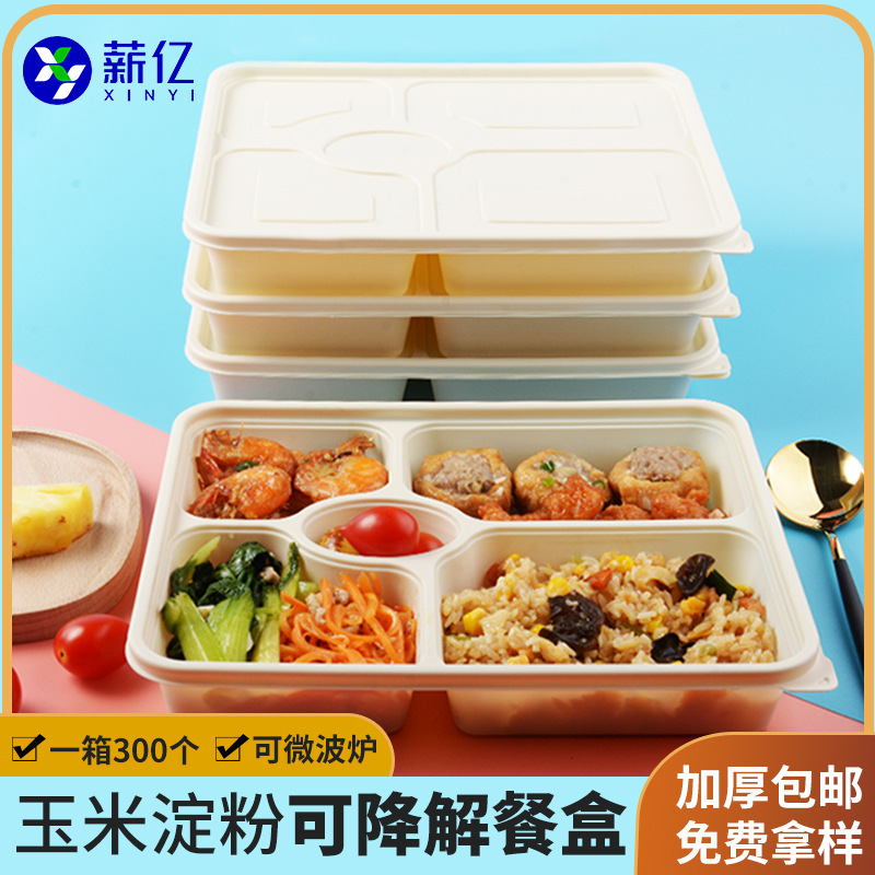 卸売り使い捨て5格の外食箱トウモロコシ澱粉環境保護分解可能弁当箱角型弁当箱1250ml