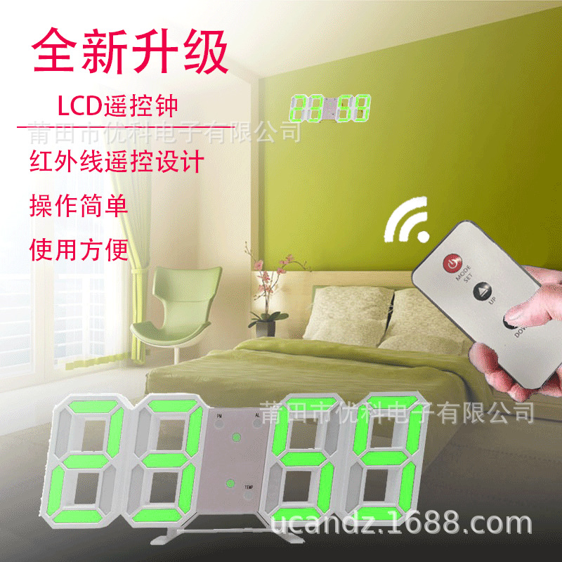 目覚まし時計創意知能3d立体掛け時計多色温度led台時計デジタル大画面リモコン電子時計