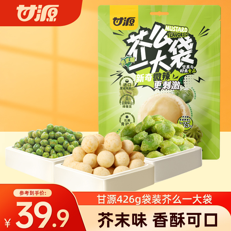 甘源426G袋装芥么一大袋上头坚果芥末味零食大礼包箱规10袋