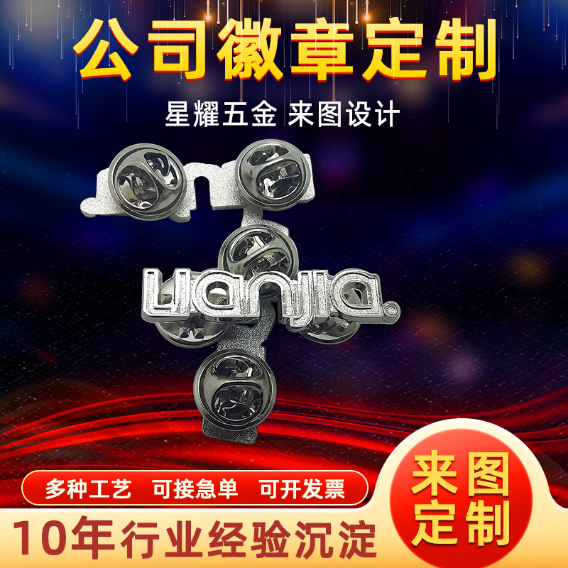 星耀カスタムアルファベット英語透かし彫りバッジチェーン家司章不動産バッジ企業従業員徳祐ブローチ