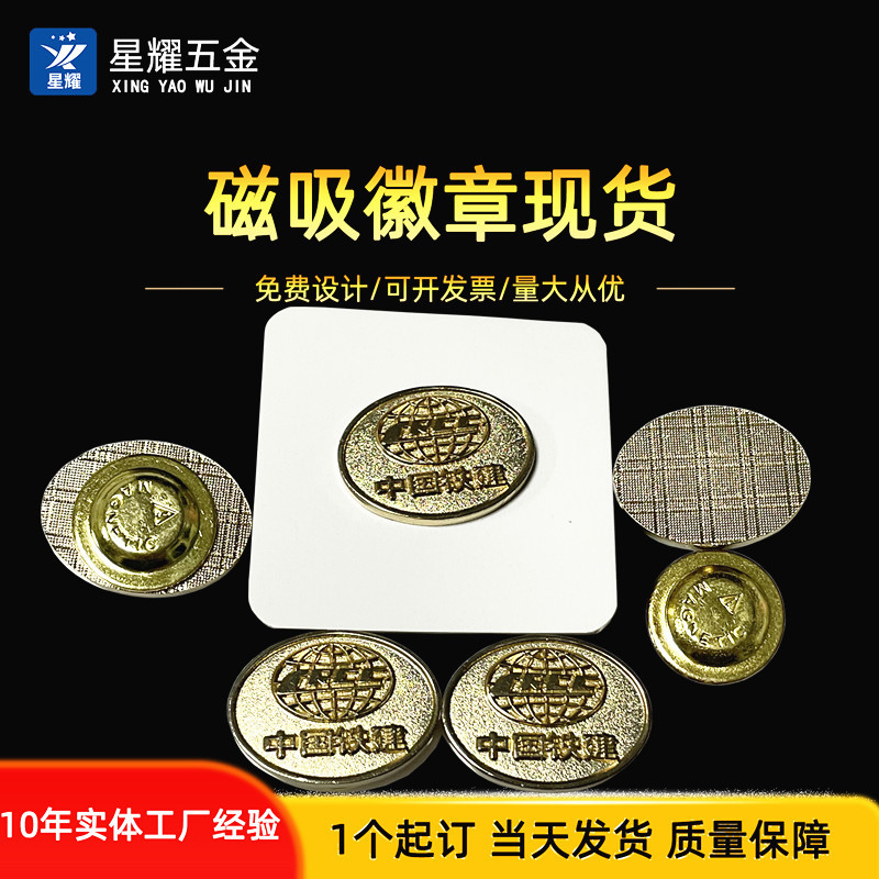 星耀金物の鉄建の紋章の鉄質のプレスの電気めっきの光沢の砂の底の磁気は金属の胸の章の司の紋章のブローチの現物を吸います。