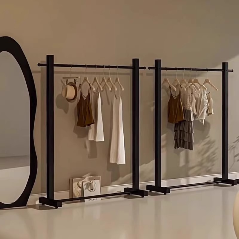 ステンレス製床置き衣料品店ディスプレイラック黒サイドディスプレイラック婦人服店の壁掛け洋服ラックシンプル