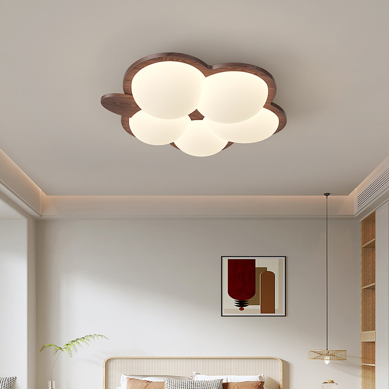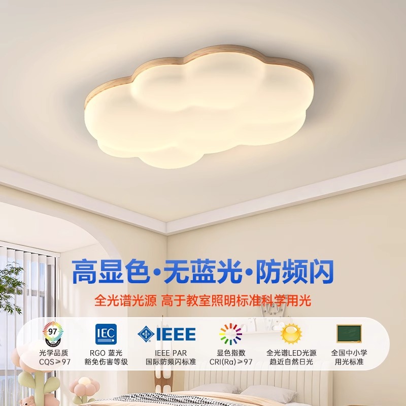 北欧原木風寝室灯天井灯現代シンプル創意アニメ雲輪目保護知能子供部屋灯
