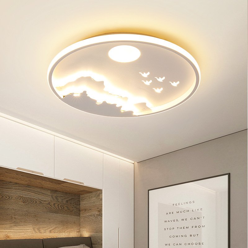 寝室の天井灯は簡単で現代的な白い山水北欧の軽い豪華な円形の部屋の部屋の広東中山の照明器具です。