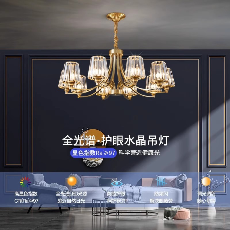 軽豪華長尺水晶レストランシャンデリア北欧全銅現代シンプル香港式高級アメリカ式バーテーブル照明