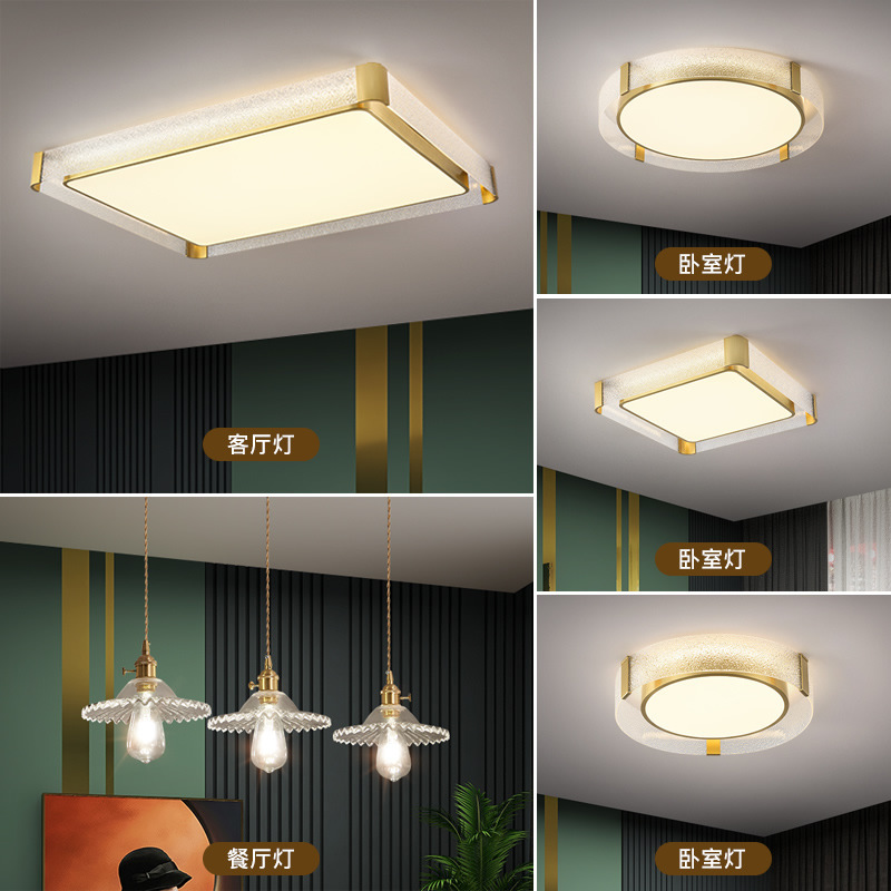 全銅天井灯主寝室灯軽豪華ガラス円客間灯現代シンプル大気2024年新型照明器具