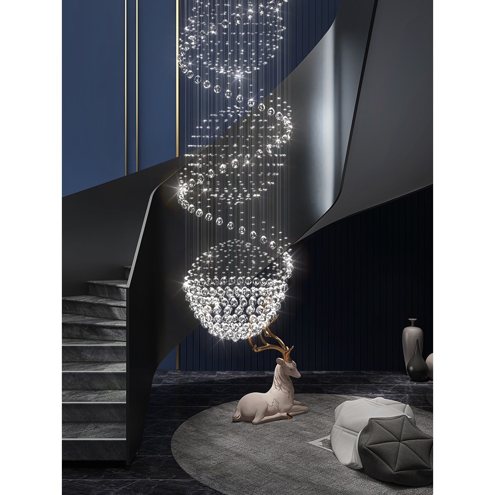 複式楼大シャンデリア階段間ランプ長シャンデリア現代シンプル別荘客間丸球楼中楼水晶シャンデリア