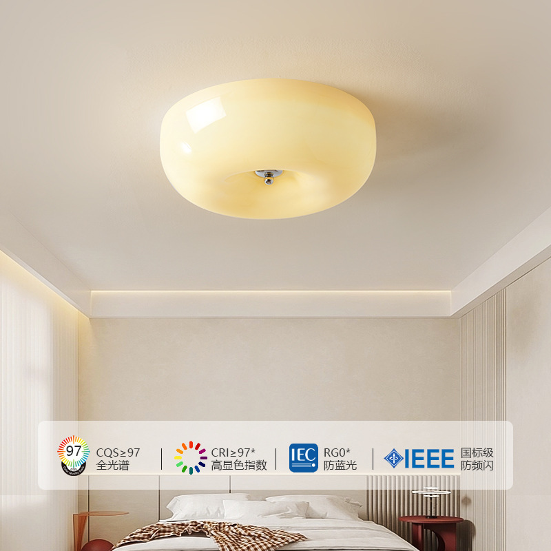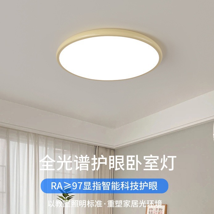 寝室ランプクリーム風円形ledランプ現代シンプル全スペクトル保護眼高顕指寝室書斎天井ランプ