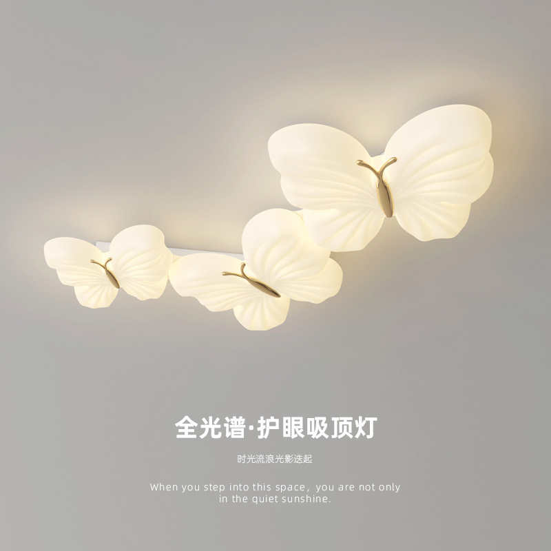 フルスペクトバタフライリビング天井ライトクリーム风軽い豪华な高级感护眼寝室ダイニング照明器具フルハウスセット