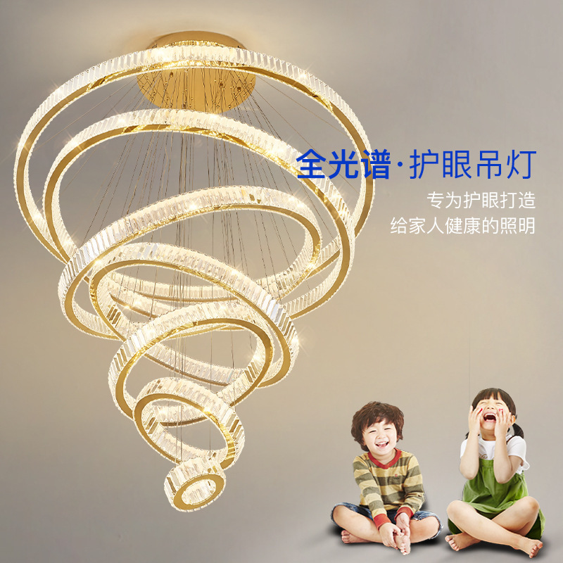 全スペクトル複式楼客間大シャンデリア現代別荘中空階段間ホテル軽豪華水晶照明器具