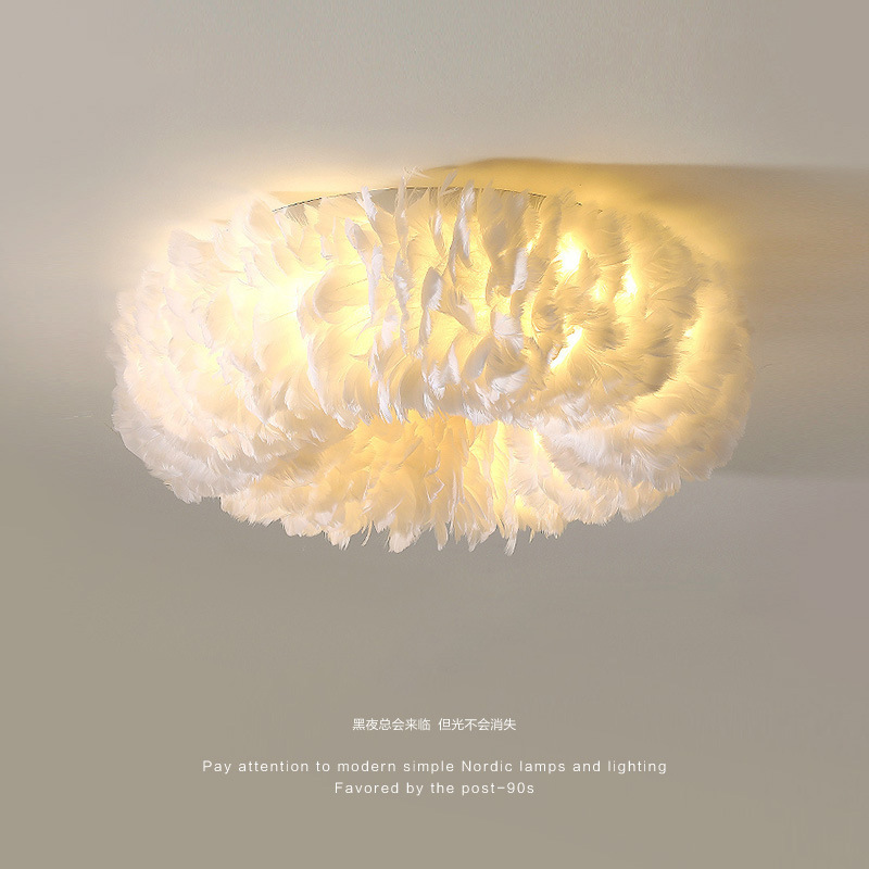 寝室灯天井灯北欧ins風新羽毛少女ネット赤部屋灯暖かい創意書斎灯