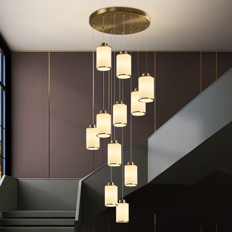 複式階段シャンデリア新中国式階段間客間灯具アメリカ式別荘中空回転階段長シャンデリア