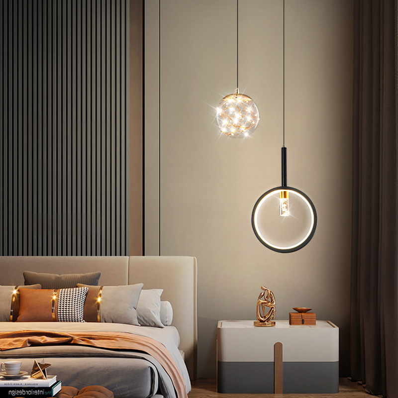 寝室の書斎のベッドの上の小さいシャンデリアの北欧の双頭の長い線のレストランのスタンドの現代の簡単な客間の背景の壁の明かり
