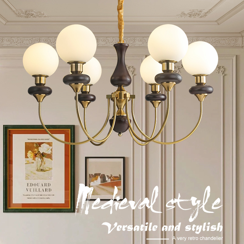 フランス中古客間灯シャンデリアレストラン灯具魔豆アメリカ復古風寝室灯胡桃木色天井灯