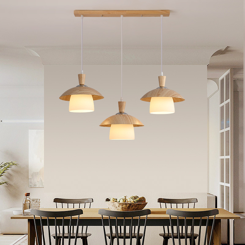 レトロなレストランのシャンデリアの空飛ぶ円盤のシングルヘッドのシンプルな3つのバーのシャンデリアの茶室の木目の明かりの寝室のベッドの頭の小さいシャンデリア
