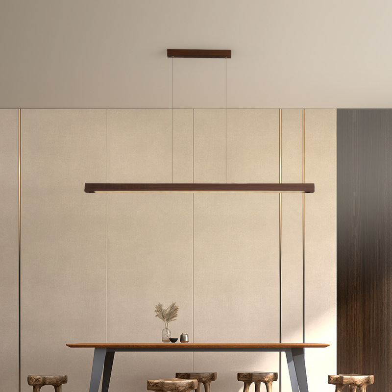 胡桃木レストランシャンデリア現代シンプル新中国式禅意茶室実木長条一字書斎食卓照明