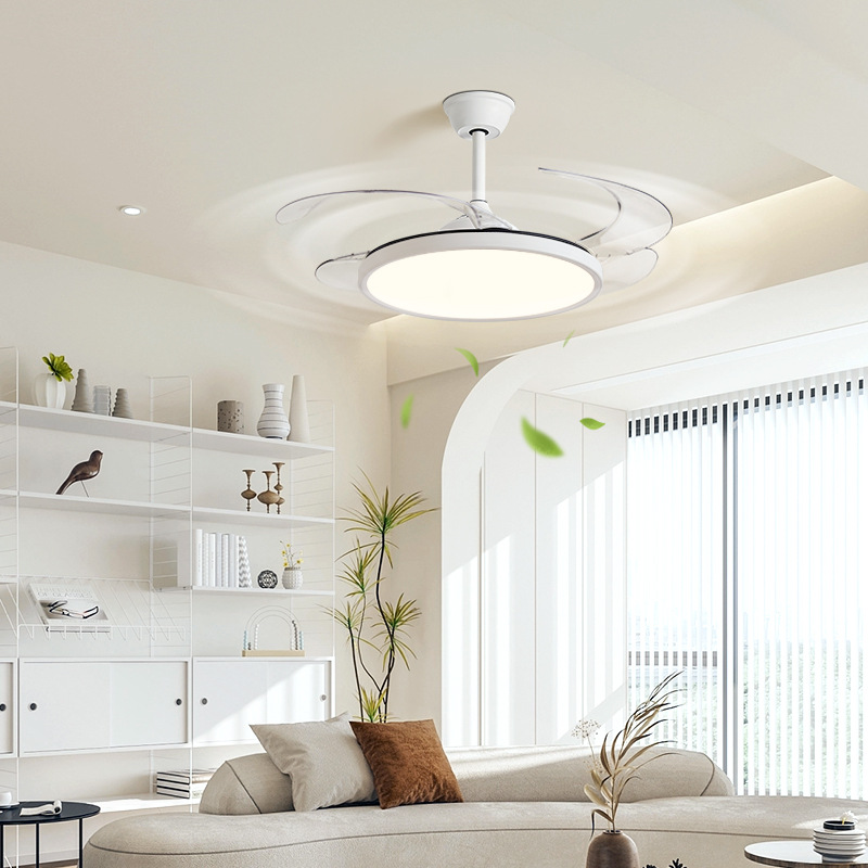 非常にシンプルな全スペクトルファンランプ超薄型ledステルス保護リビングルームのレストランの寝室の静音扇風機のシャンデリア